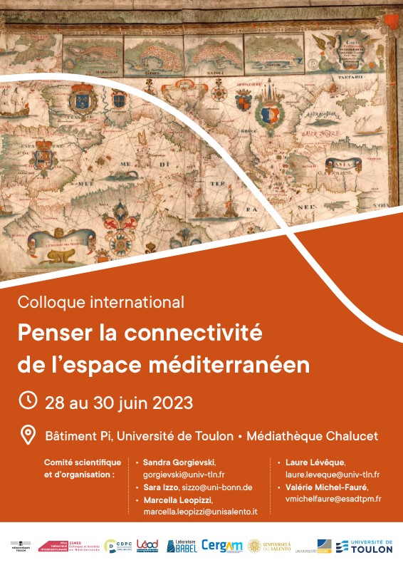 Depuis les travaux du pionnier des études méditerranéennes Fernand Braudel, les multiples visages de l’espace méditerranéen ont maintes fois été peints. Considérée par ce dernier comme une « série de péninsules » et un « complexe de mers » qui s’étend entre le désert au Sud et l’Europe au Nord et qui tient une frontière liquide avec l’Atlantique, la Méditerranée forme, dans sa diversité, une unité à la fois physique et humaine. Ce qui est en jeu c’est l’écriture d’une « histoire de nœuds et de lignes droites ». « Mer de communication », la Méditerranée est également « une mer de conflits » qui, depuis l’aube des temps, se caractérise par des affrontements de peuples et de communautés riverains. Afin d’envisager une “histoire croisée” de la Méditerranée, l’objectif principal de ce colloque est de développer des approches théoriques et d’entreprendre des études de cas qui permettent de penser le concept de connectivité de l’espace méditerranéen dans les diverses disciplines et, ce faisant, d’instaurer un dialogue inter- et transdisciplinaire convoquant aussi bien l’histoire, l’économie, le droit, la géographie, les lettres, les arts, les sciences de communication et de média et la philosophie. »